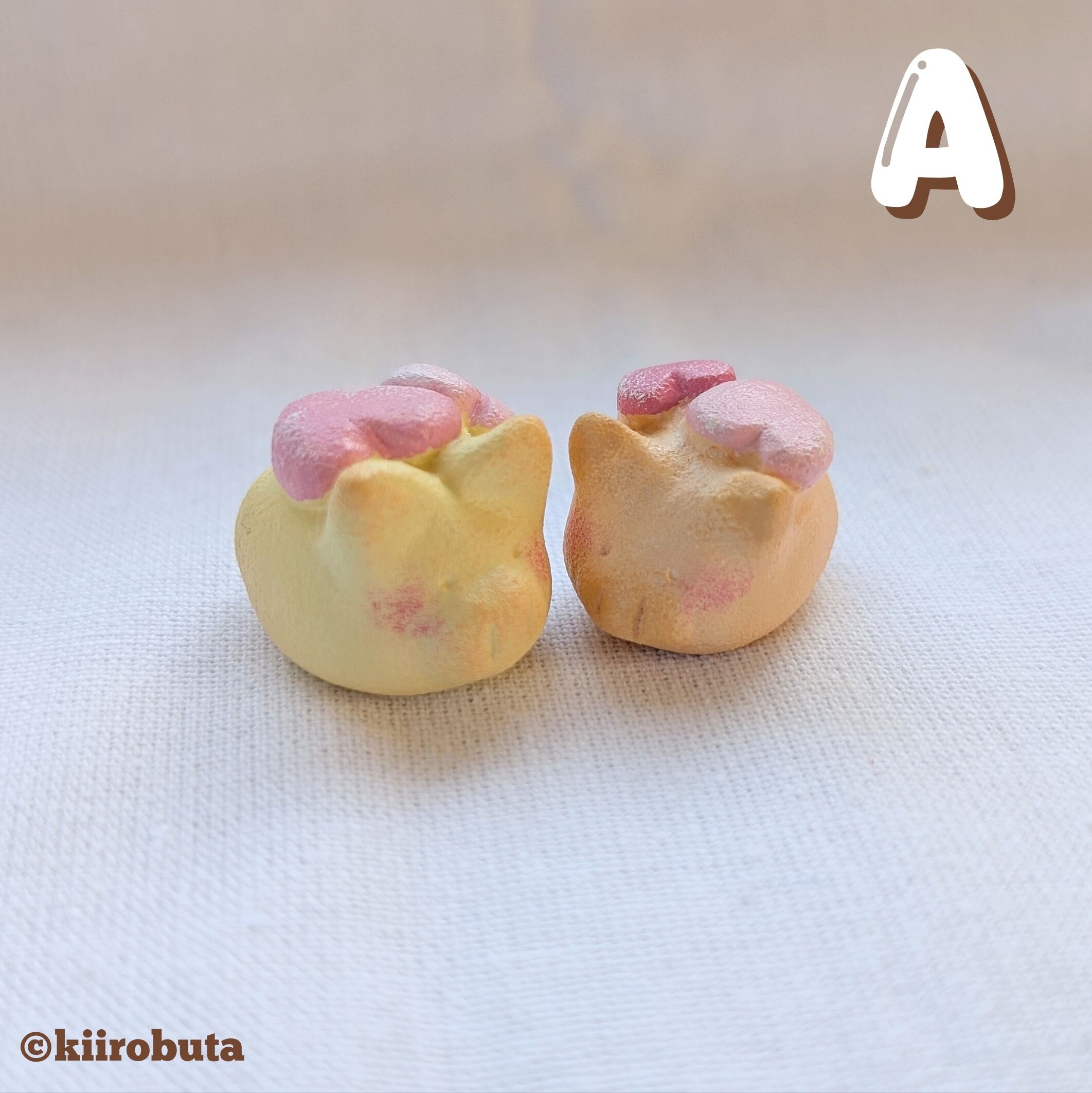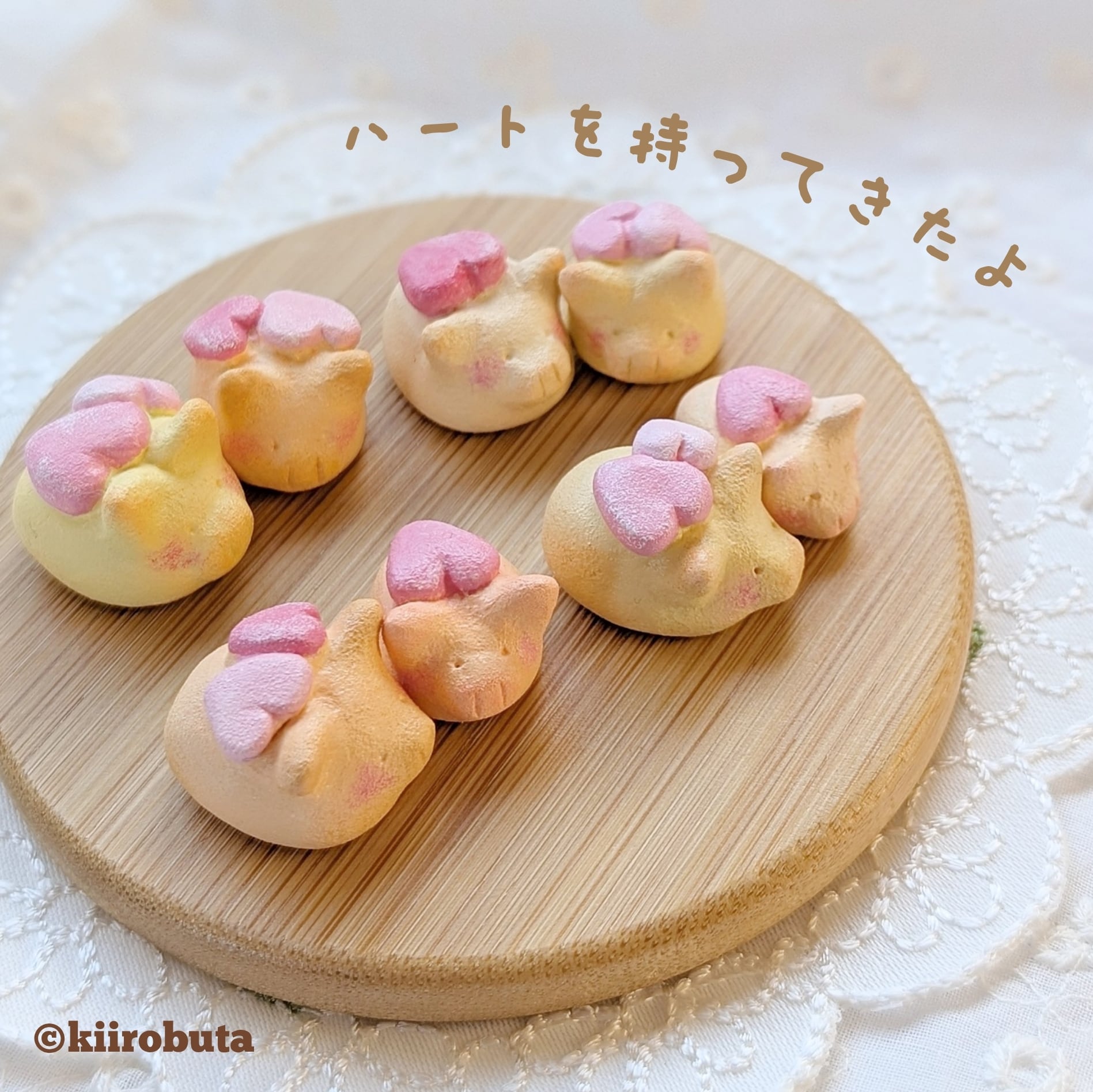 ハートをしょったこぶたちゃん達の小さな粘土小物です。