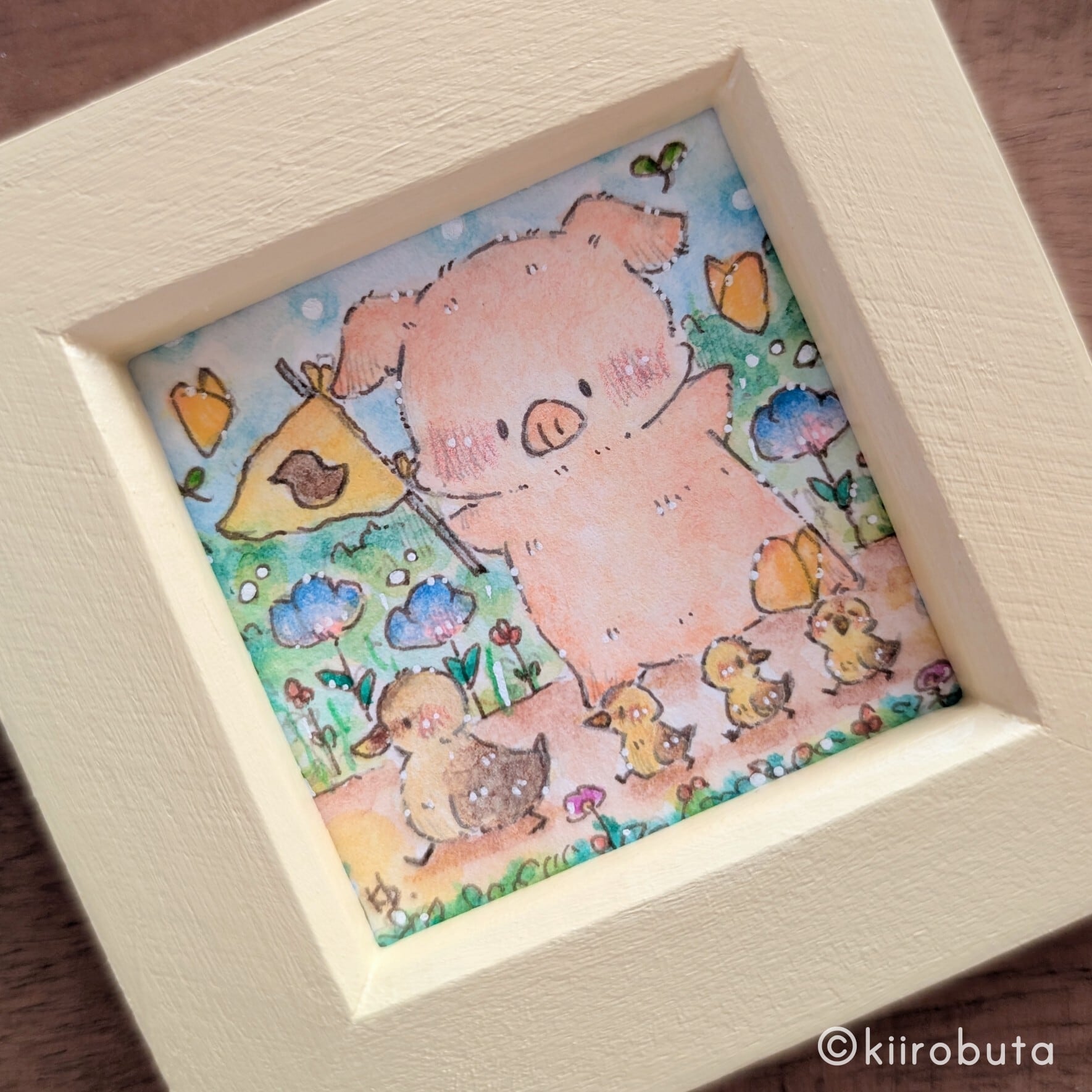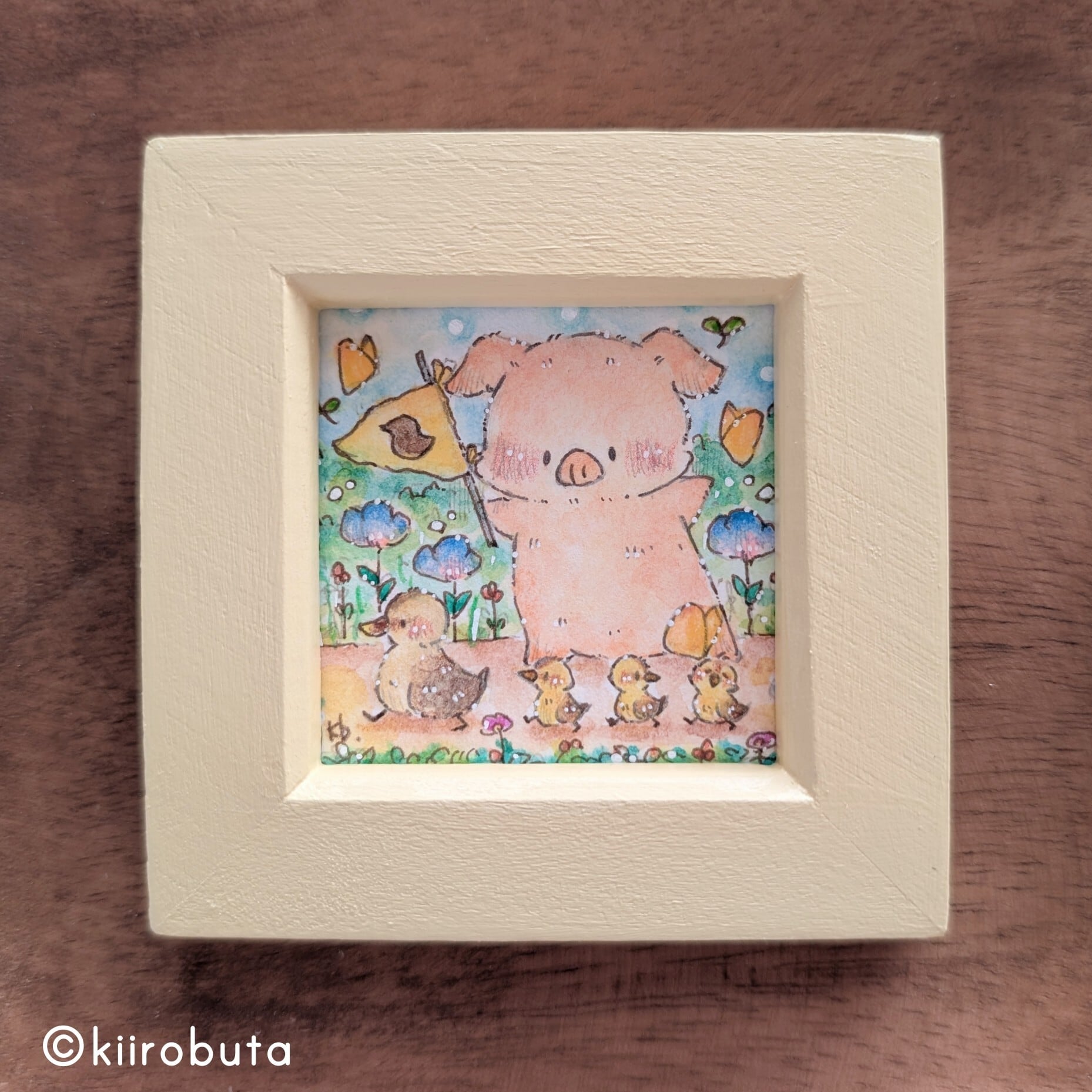 小さなフレームにおさめた手の平サイズのドローイングです。